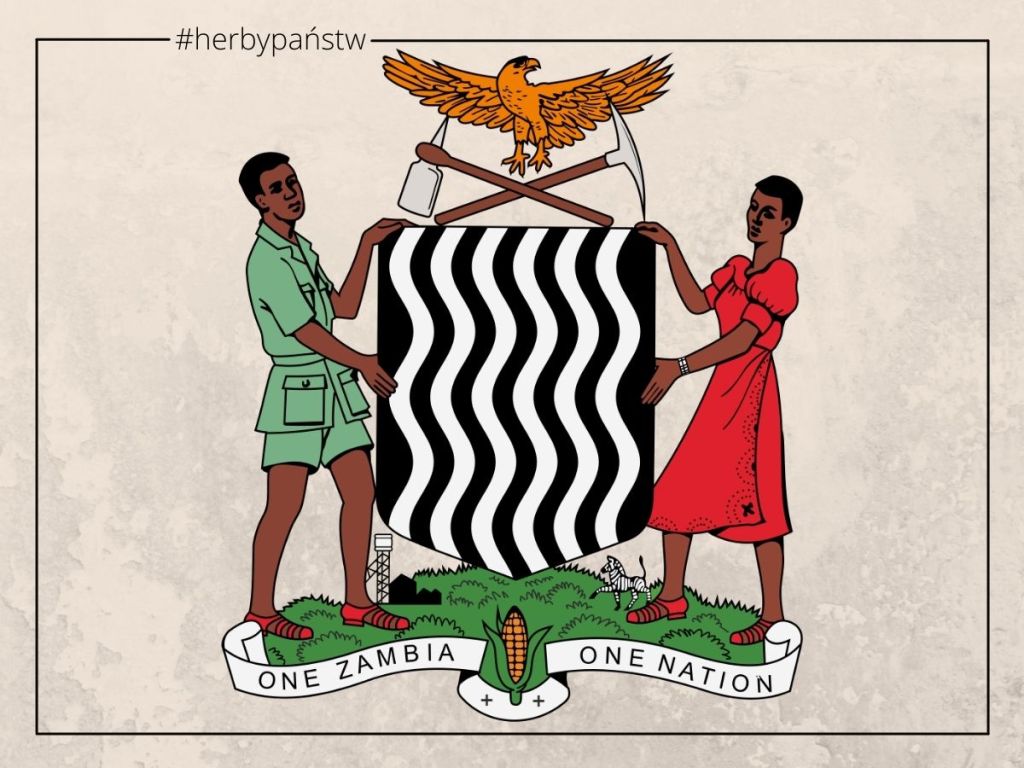 Herb Zambii przedstawia najważniejsze bogactwa kraju i wartości bliskie jego mieszkańcom: