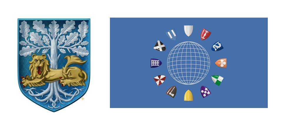 Symbole Międzynarodowego Dnia Heraldyki: herb (autorstwa Danilo Martins) i flaga (autorstwa Ljubodraga Grujića), źródło: facebook.com/celebrateheraldry/
