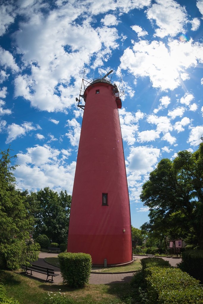 Latarnia morska z końca XIX w. jest najbardziej charakterystycznym obiektem w Krynicy Morskiej, więc nie mogło jej zabraknąć w miejskim herbie.