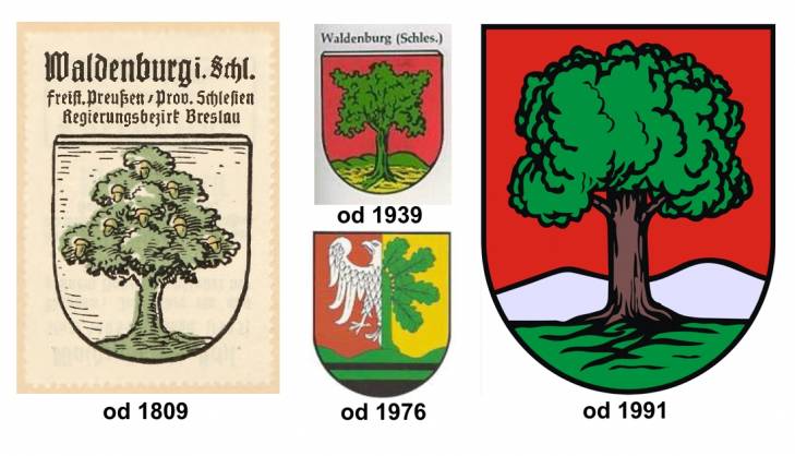 W języku niemieckim Wałbrzych to Waldenburg, czyli leśny gród (Lasogród). Nazwa ta nawiązuje do położenia osady na wzgórzach, w otoczeniu gęstych lasów. Stąd obecność od samego początku motywu drzewa w symbolice miejskiej.